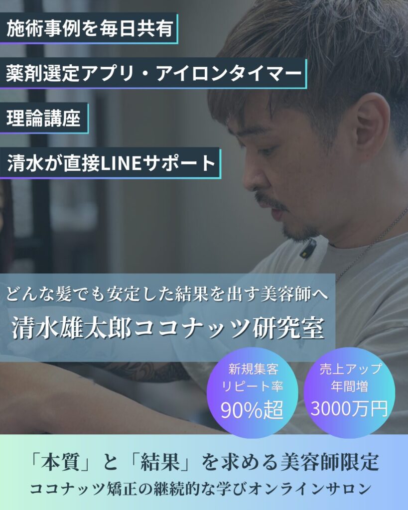 全人種対応のダメージレス縮毛矯正『ココナッツ矯正®︎』開発者。