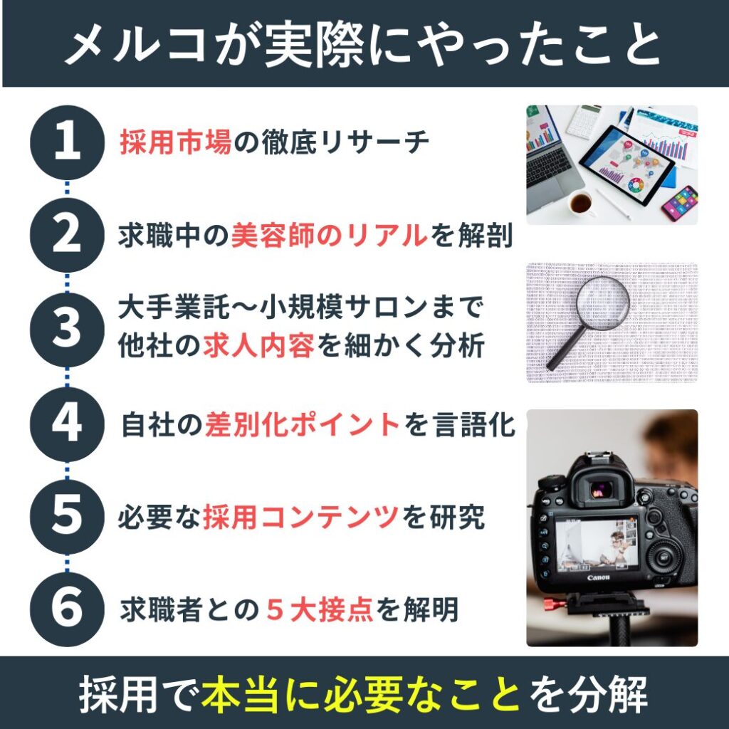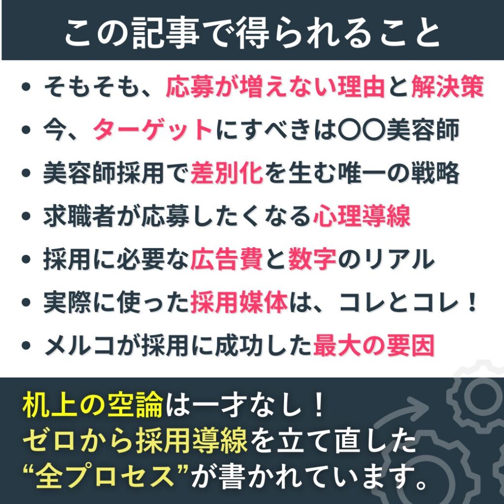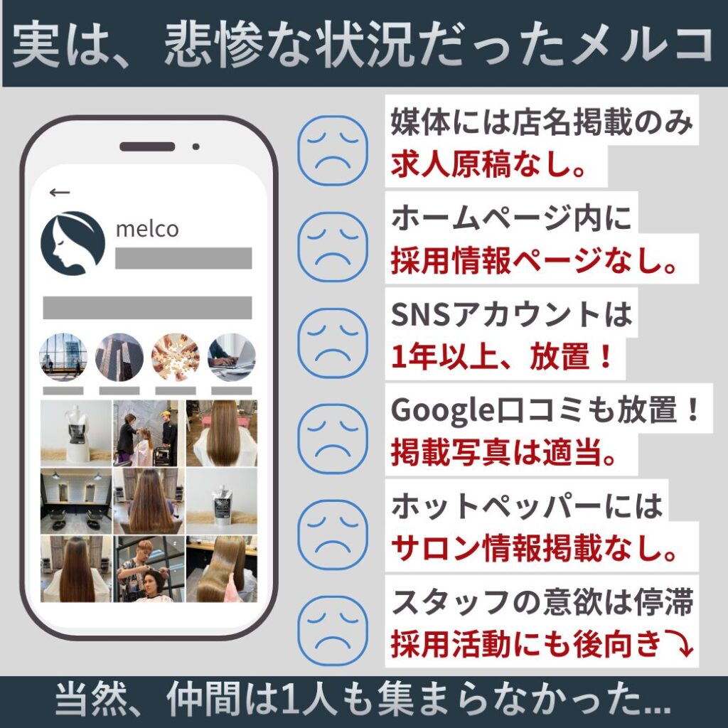 美容師の採用がここまで難しくなった時代に、ゼロから5ヶ月で「9件応募→4名採用」を実現したメルコの実録ノウハウを、包み隠さず公開します。